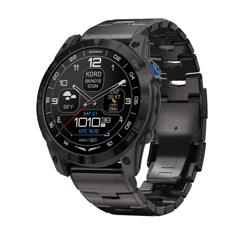 ساعت هوشمند گارمین مدل MARQ Aviator (Gen 2) دارای قابلیت های صفحه نمایش لمسی، با حالت های ورزشی مختلف، پایش وضیعت استرس، با 32 گیگابایت حافظه داخلی بند تیتانیوم